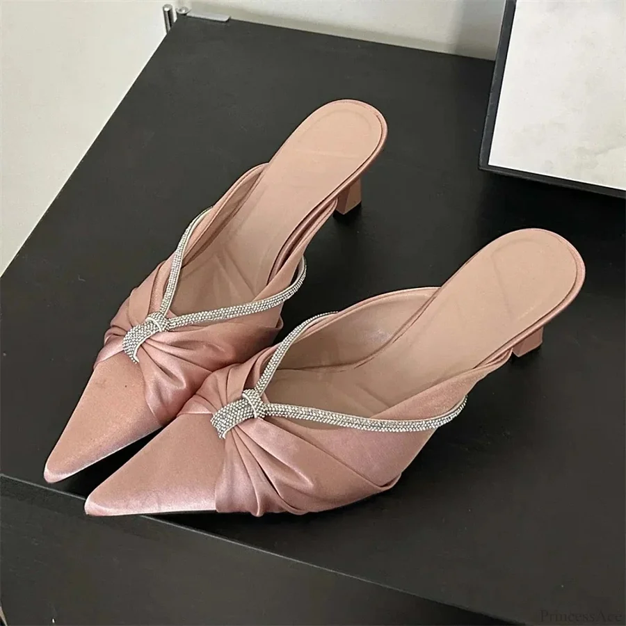 Design Style Crystal Pointed Fashion Thin Heels Shallow Casual Dress Low Heel Pump